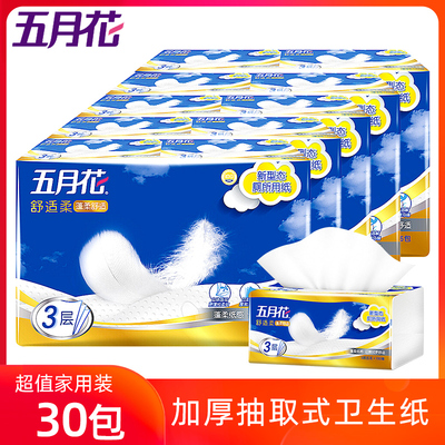 五月花衛生紙舒適柔3層100抽30包批發家用家庭裝衛生紙抽取式衛生紙加厚衛生紙